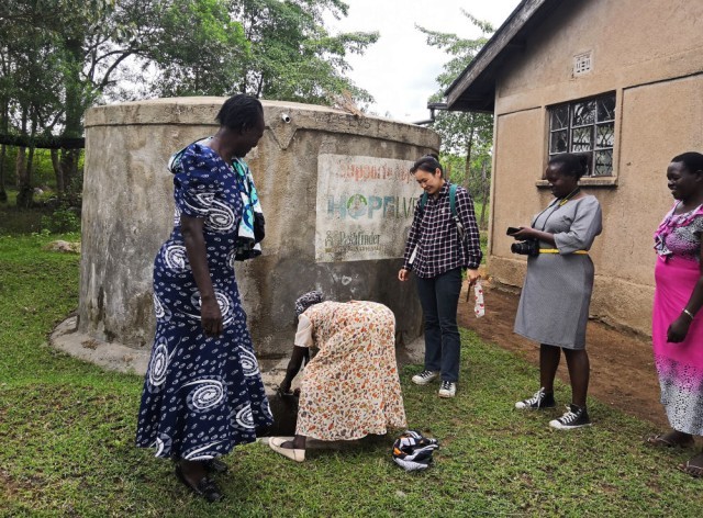 中方专家在维多利亚湖区考察当地雨水收集利用的情况(2019年12月9日摄)。
