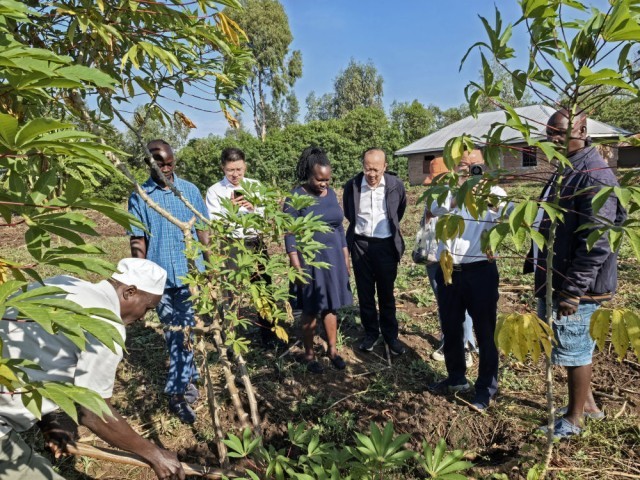 中方专家在维多利亚湖区考察当地绿色农作物的种植情况(2024年8月27日摄)。