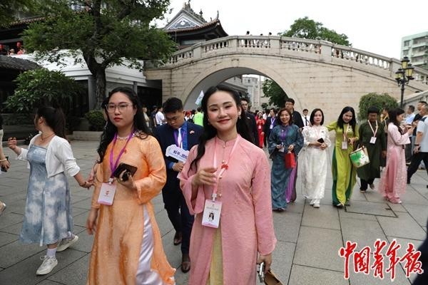 越南青年数字内容创作者阮碧河在现场分享道,自己的创作灵感深受中国创作者李子柒启发:“她用真诚诗意的镜头讲述家乡文化,让我深受触动,也激励我用镜头讲好越南故事、拉近两国青年距离。”她倡议两国青年内容创作者携手合作,共同打造美食、文旅、生活体验类双语短视频,依托主流社交平台推出“中国青年眼中的越南”“越南青年眼中的中国”等系列内容,“一段真实的视频、一个走心的故事,就是连接中越青年最坚实的桥梁。”