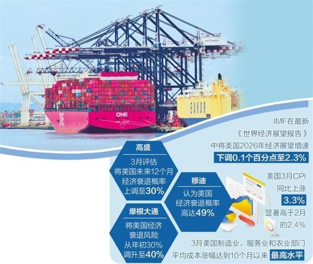 在经济增长预期方面,美国官方部门的立场与市场机构态度存在显著的“温差”。从各大机构研究情况看,美以伊战事加剧了全球能源体系价格波动和供应链受阻,同步对美国国内油价和供应链造成反噬,冲击其经济增长动能。