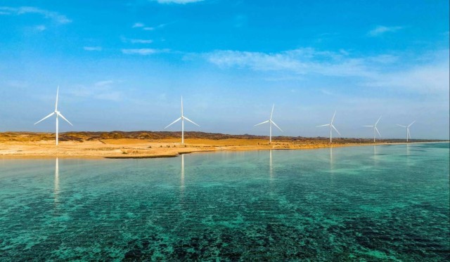 李军旗:作为“一带一路”倡议下的重要参与者,我们在阿拉伯国家开展了多项具有代表性的合作项目,涵盖传统能源、清洁能源、电力基础设施、水资源与海水淡化等领域。其中阿联酋风电示范项目是阿联酋境内首个公共事业的风力发电项目,总装机容量为117.5兆瓦,由23台风机组成。