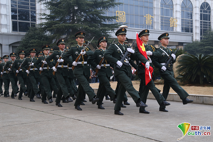 晨光初透,华东交通大学师生全体庄严肃穆,整齐庄严地等待着升旗仪式的开始,由国防生组成的国旗护卫队则更早地整齐站立在指定位置,迎着朝阳向国旗致敬。中国青年网 黄河 摄
