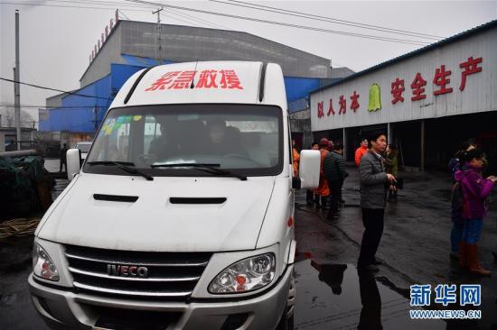 救援车辆在河南登封兴峪煤业有限公司发生冒顶事故的井口待命。图片来源:新华网