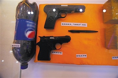 红其拉甫边检站的展览馆里,展示着藏毒的可乐瓶和多种型号的枪支。