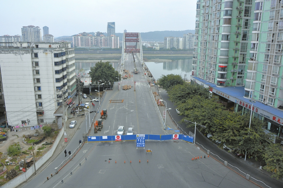 2月7日,绵阳市涪江三桥已全面封闭维修,过桥车辆和行人只能选择绕行。
