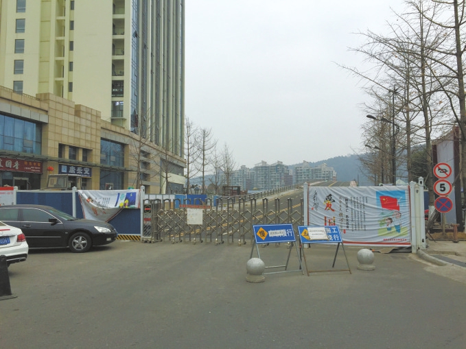 2月7日,封闭的涪江三桥内工作人员正忙碌着,桥头告示牌上贴着交通管制公告:人员和车辆禁止通行。