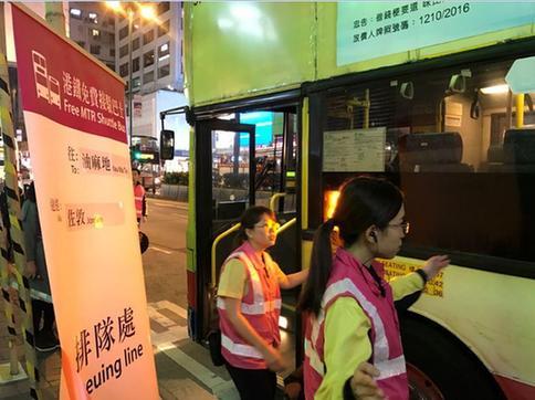 香港地铁纵火事件发生后,地铁安排免费巴士送乘客回家。网络图。