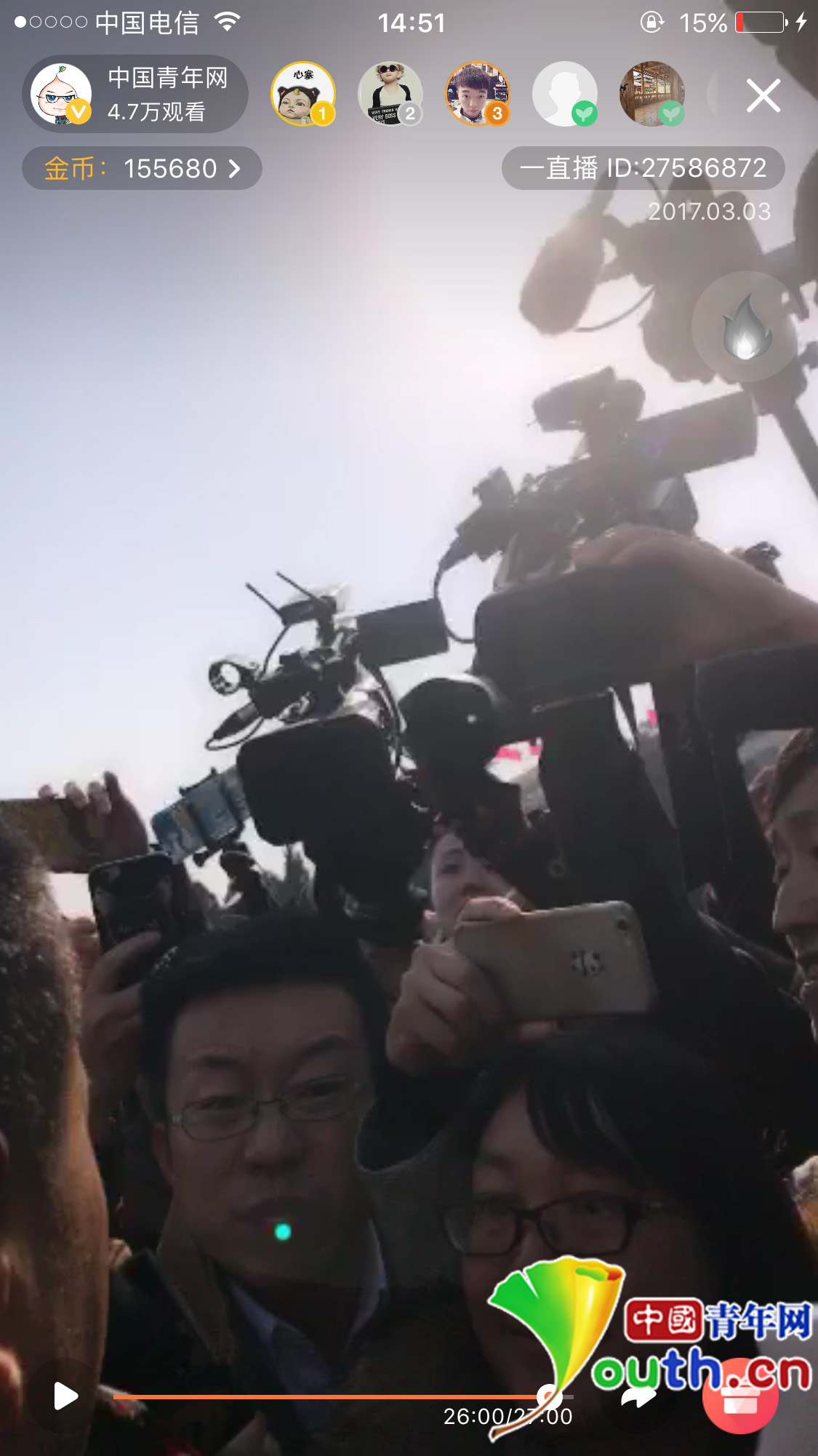 毛新宇委员被记者们围堵。 @中国青年网 官方微博直播截图
