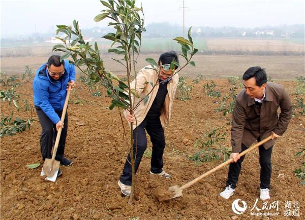 人民网钟祥3月6日电 3月6日,在九里乡杨桥村肖家嘴的一片山坡上,湖北钟祥100多名机关干部们热情高涨、干劲十足,扶苗、填土、踩实、合力种下一棵棵枇杷树。经过一番热火朝天的劳动,100多名机关干部共种植枇杷树苗3000多株。