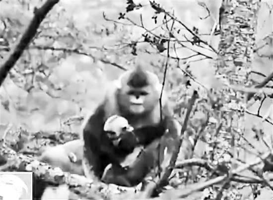 妈妈倍加呵护刚出生的小滇金丝猴“雪儿”。视频截图
