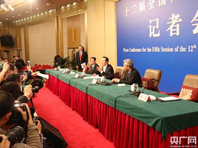 农业部部长韩长赋、副部长张兆林答中外记者问。(央广网记者 吴海波 摄)
