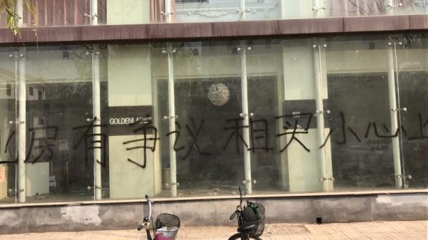 在容城税务局对面的一排门面房墙面上,赫然写着“此房有争议,租买小心上当”。 澎湃新闻记者 陆鸣 图