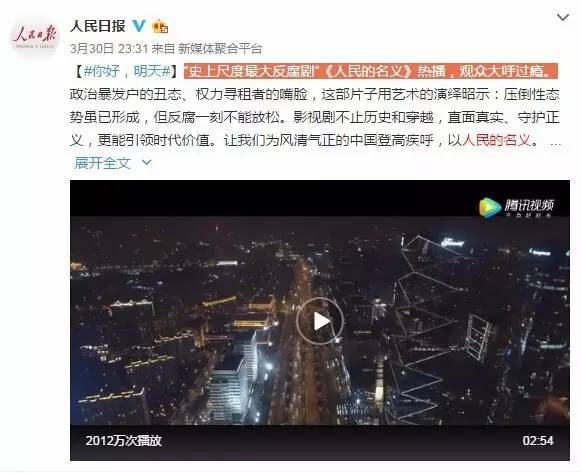 相信各位最近已经被这部号称“史上最大尺度反腐剧”的《人民的名义》刷屏了。连人民日报都给予很高评价。