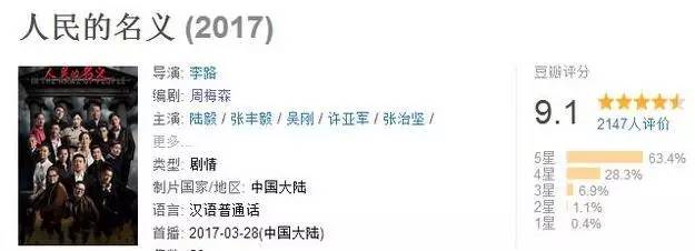 豆瓣给《人民的名义》9.1,但南方君想给9.5!不敢再给多,怕骄傲。