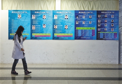 4月6日,友谊医院,专家诊疗中心外的走廊上,贴着医院专病门诊的介绍。