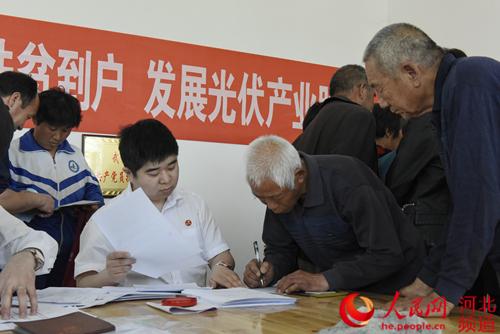 图为农行武强支行工作人员为贫困户办理“光伏贷”。王雅洁 摄