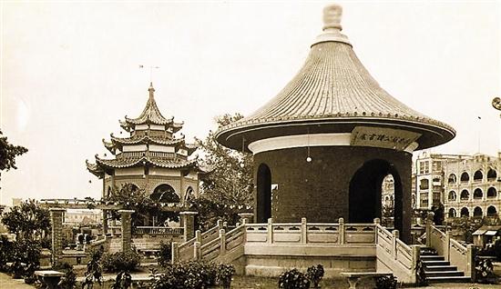 海珠公园里的音乐亭(右)与玻璃屋(左)