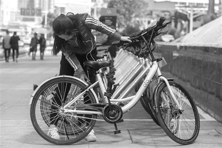 南京市场上,流行的几种共享单车主要有ofo小黄单车、町町、小蓝、摩拜、Hellobike等,大街小巷中穿梭的小黄单车,采用的是机械密码锁,共有4位数。使用该单车时,只需打开小黄单车的APP点击“马上用车”,输入车牌号后,就可以获得解锁码。使用者将获得的解锁码,手动输入车锁旁的密码盘,按下圆形按钮,就可以成功解锁使用单车。由于小黄单车的车锁和密码都是固定的,有的人开锁知道密码后,只要保证车辆不被骑走,就能继续输入密码免费使用单车。