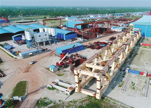 孟加拉帕德玛大桥的施工现场图。(资料图片)