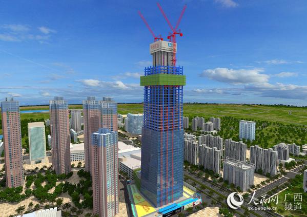 中国建筑第八工程局广西分公司副总工程师兼项目经理唐际宇透露,该项目存在基坑深、场地窄、核心筒变化多及塔楼结构偏心等一系列难题,对于中国建筑第八工程局是一个新的挑战。但该项目部大胆创新,先后运用塔吊技术创新、顶模技术创新、施工电梯技术创新、BIM技术创新、后浇带支撑技术创新,以及后浇带提前封闭技术等,技术难关正被一一攻破。