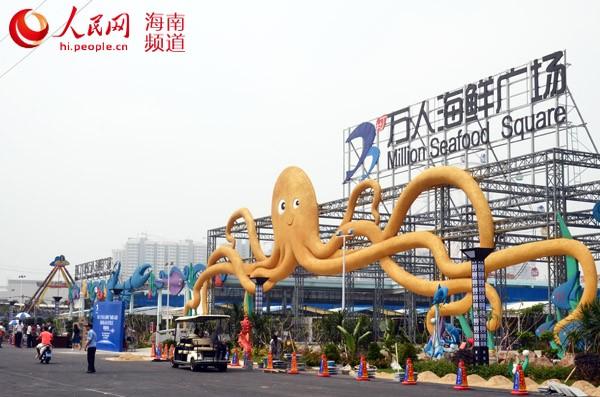 据介绍,海口丁村万人海鲜广场项目按4A级景区标准规划、建设,总占地面积160亩,总投资1.3亿元。广场设有海鲜平价超市、游客自助用餐区、集散广场、生态停车场、海洋文化展示馆以及儿童游乐场等配套设,其中海鲜加工档位88家、小吃档位40家、海鲜零售档位150家、精品菜馆3栋,特色菜馆7栋,停车位1200个,可同时容纳1.2万人就餐。