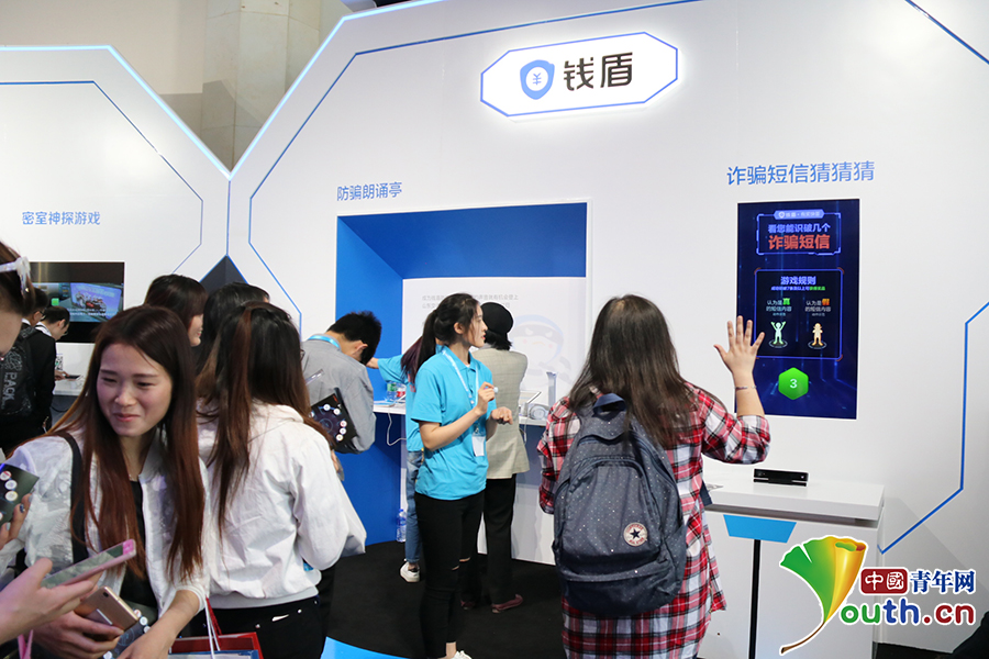 参观者体验展区内“诈骗短信猜猜猜”安全知识问答。中国青年网记者张群 摄