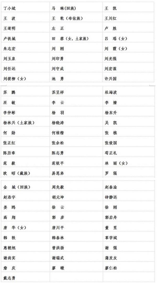 (15人,按得票多少为序,得票相同的按姓氏笔画为序)