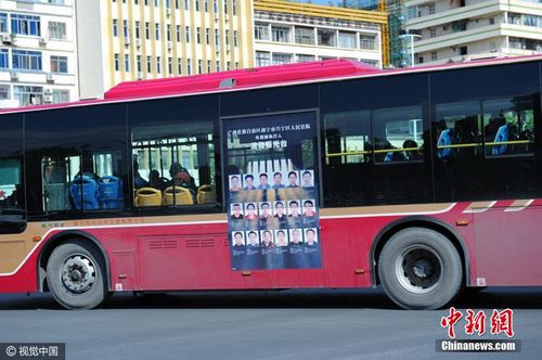 2016年11月26日,广西南宁市,一辆公交车上曝光了一批老赖的信息。视觉中国