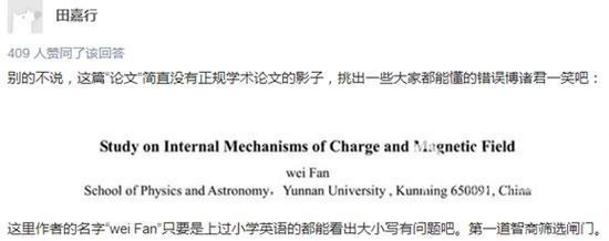在评论中,回答获得点赞数最多的网友“胡晓凡”称,有同学把这篇报导发到物理课的群里后,本来老师还想让他们写一篇小论文来驳斥,算期末加分。看到今日头条自媒体号发布的相关内容后,其老师给文中提及的沈教授发了一条短信求证。“然后我们的加分机会就没有了。”