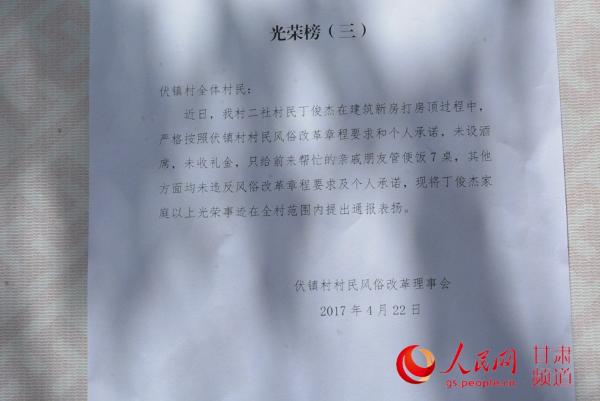 光荣榜通报村风新气象(刘海天 摄)