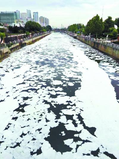 昨天的一场雨后,有市民发现,在东三环庆丰公园附近的通惠河河面上有不少白色泡沫,好像是洗衣水倒进了河里。仔细一闻,泡沫带有轻微的臭味,但随着河水流过几百米后,泡沫就逐渐消失了。这些白色泡沫是怎么产生的?河道内到底有没有污染物?