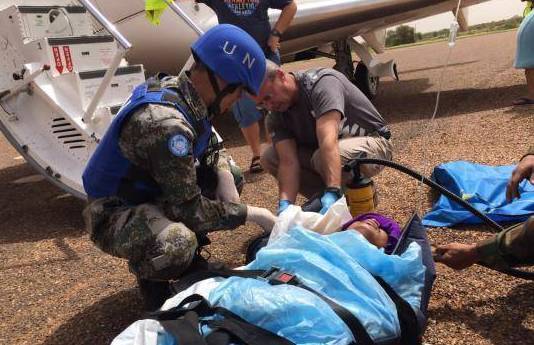▼这是在南苏丹负伤的中国维和士兵: