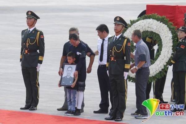 ▼这是官兵代表和烈士家属在迎接南苏丹维和任务中牺牲的烈士: