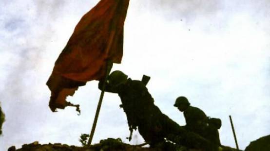 人倒旗不倒的解放军战士