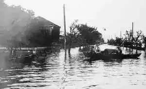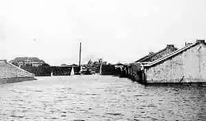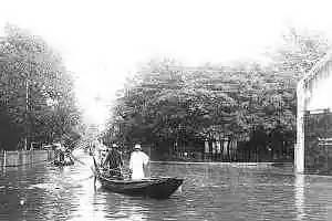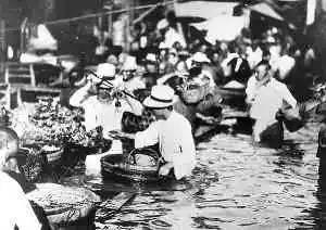 1931年苏北特大洪水。人们只能在街道水中做买卖