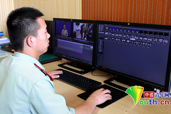 运用剪辑软件进行后期制作。中国青年网通讯员 赵明 摄
