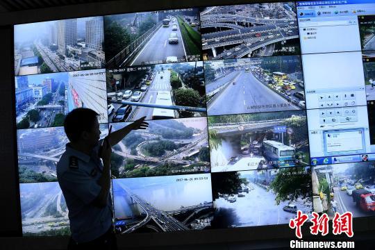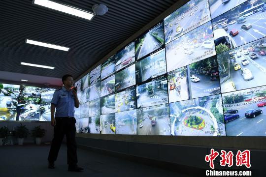 图为民警正在通过远程平台控制早高峰交通压力。 陈超 摄