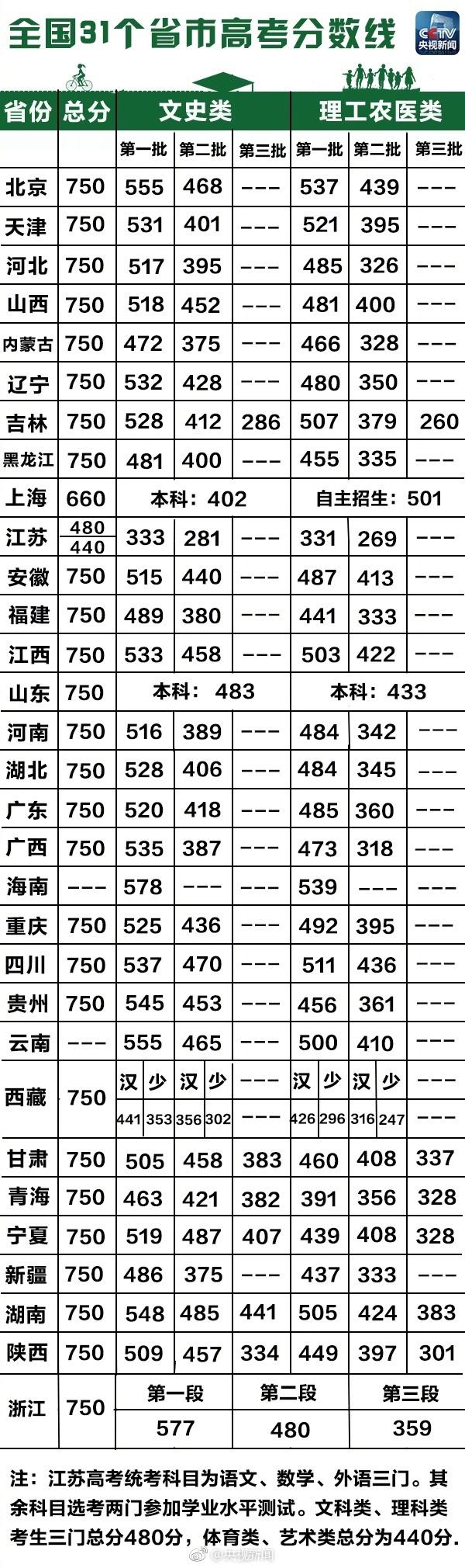 最新最全!31省区市高考各批次录取分数线出炉
