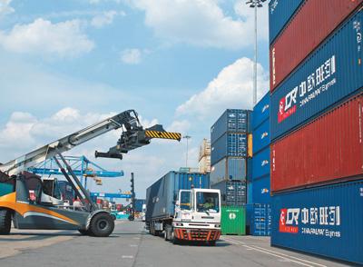 记者在杜伊斯堡港码头上看到,五颜六色的集装箱如同一栋栋楼房鳞次栉比,每几分钟就有一辆运货卡车从身旁疾驰而过。面对前所未有的繁忙景象,杜伊斯堡港口股份有限公司董事长埃里希?斯塔克由衷地赞叹原因之一是“中欧班列越来越给力”。据介绍,由于中欧班列的贡献,去年杜伊斯堡港成为德国唯一没有亏损、反而赢利创造纪录的港口。
