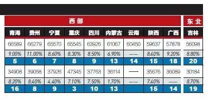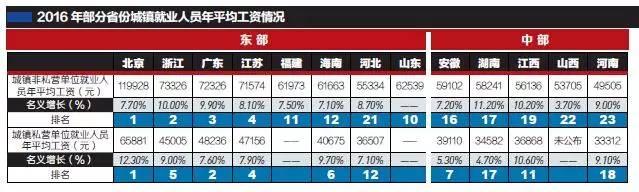 不过,从已公布平均工资数据的省份排名看,东、西部几乎是平分秋色。