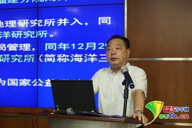 海洋三所党委书记吴日升向现场同学介绍情况。中国青年网记者 李正穹 摄