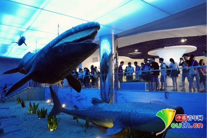 考察团在海洋三所的鲸豚展馆参观。中国青年网记者 李正穹 摄