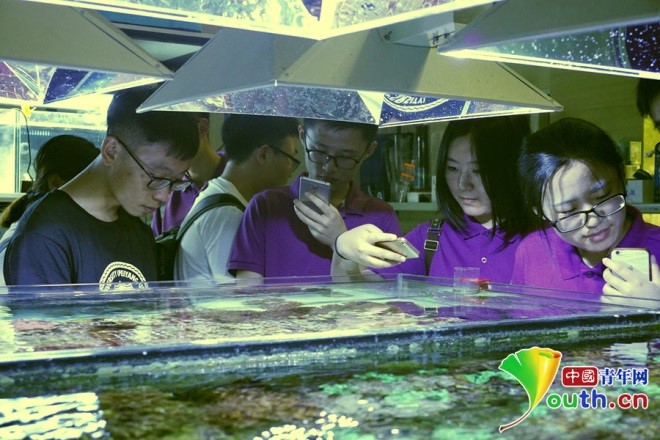 考察团在海洋三所的珊瑚馆参观。中国青年网记者 李正穹 摄