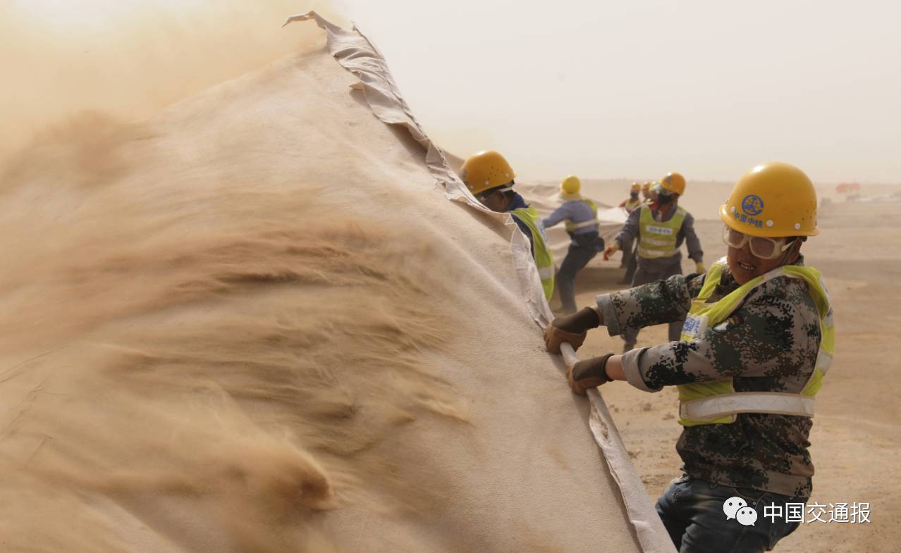 ▲风沙大,建设者们干劲更大。黄朝华摄