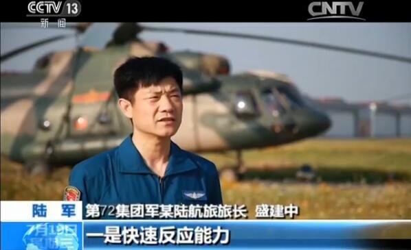 陆军第72集团军陆航旅旅长 盛建中: 陆航的优势主要体现在一是它的快速反应能力,第二呢就是体现在它的强大的机动性上,它通常比地面的机动力量快3到4倍。