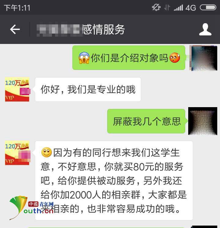截至中国青年网记者发稿,该客服突然质问中国青年网记者是否为同行,得到否定答案后,对方仍然对记者屏蔽了朋友圈,并称自己婚姻事业做的好,有人眼红来他们这学生意。