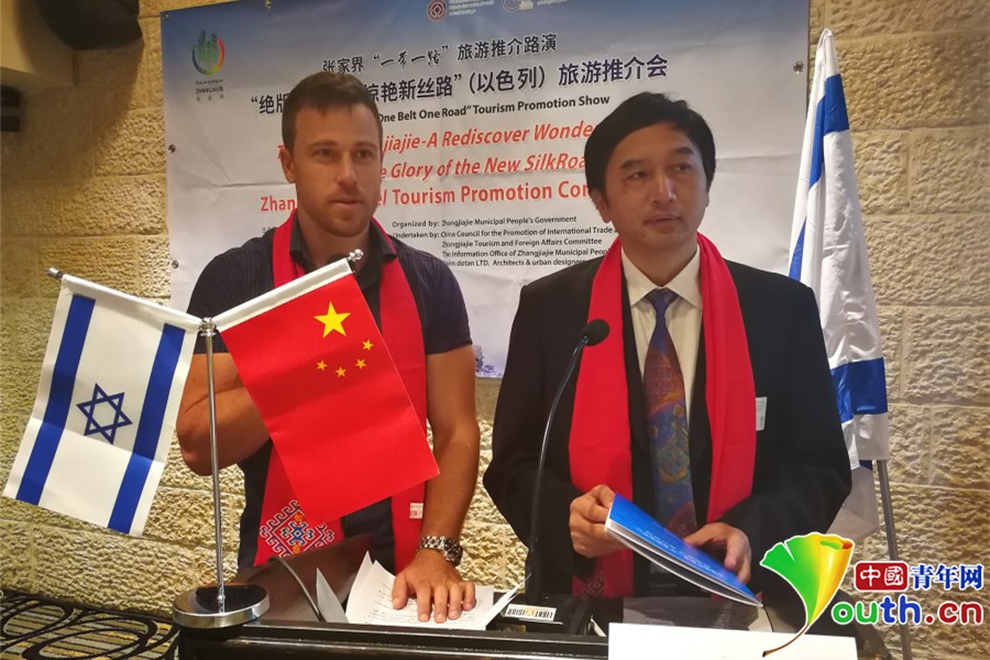 中国青年网北京7月25日电(记者吴楚 实习记者胡云茹 通讯员王建军)耶路撒冷当地时间7月24日上午,“绝版张家界,惊艳新丝路”以色列旅游推介会在耶路撒冷举行。本次推介会由张家界市政府举办,张家界市政府代表团和张家界旅游集团、张家界大峡谷、天门山、黄龙洞等知名旅游景区负责人参加。同时还有中国驻以色列大使馆、以色列旅游商和媒体人士数十人参加了推介会。