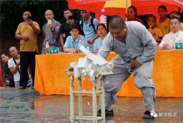 一掌劈断8块砖、二指倒立、石锁飞舞、飞刀打靶,这些经常在武侠小说和电影里出现的各种绝技30日在河南登封少林寺演武场上演,100余名海内外武术爱好者参加了少林寺举办的技艺选拔赛。