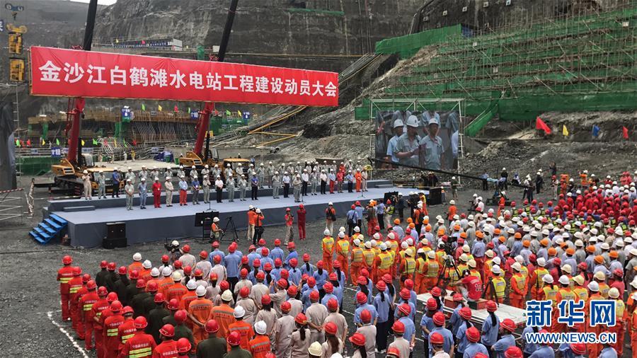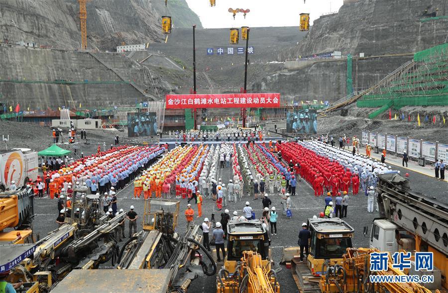 8月3日,金沙江白鹤滩水电站全面开工仪式在大坝基坑底部举行。