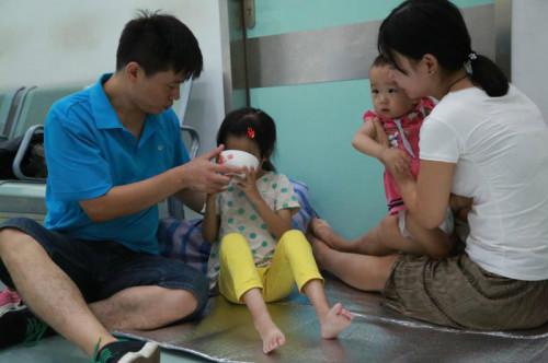 王向东,今年33岁,家住河南省登封市大金店镇,是一名男护。08年与妻子结婚,第二年迎来了他们的第一个孩子王越,2016年2月小女儿王馨越出生了,孩子出生的那刻,他感觉自己是全世界最幸福的男人,但是幸福生活没有持续多久便结束了。大女儿王越刚出生免疫力就特别差,5个多月伴随眼睛斜视加眼球震颤,视神经高度萎缩,重度脑积水,一直到大女儿两岁才做的脑室腹腔分流,后期靠喝中药观察。现在大女儿七岁多,上一年级,仅有的书本也是很吃力地在看,上厕所就害怕摔跤,并发症一个接一个。前前后后到河南省人民医院、河南省中医院第三附属医院、河南省郑大一附院、天津眼科医院、武汉协和医院、武汉妇幼保健院、武汉口腔医院进行治疗。
